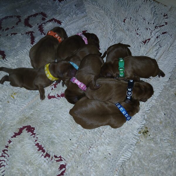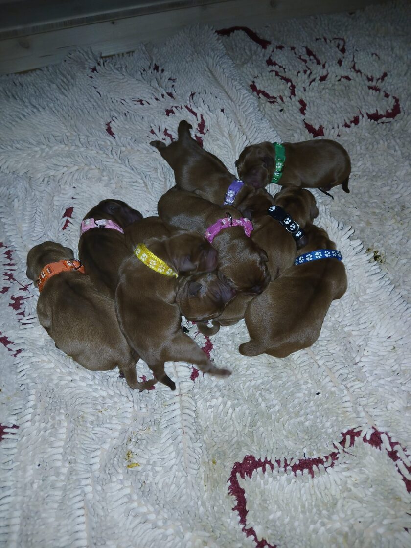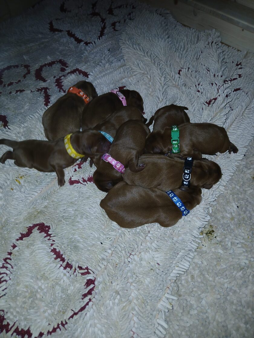 Unsere Kira hat am 21. Dezember 2025 neun süße Labrador Welpen bekommen. Was für ein tolles Geschenk für Weihnachten!